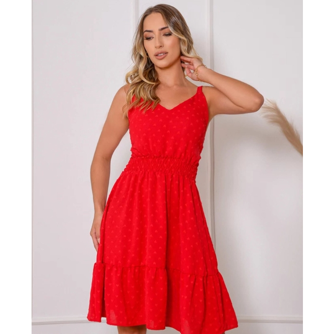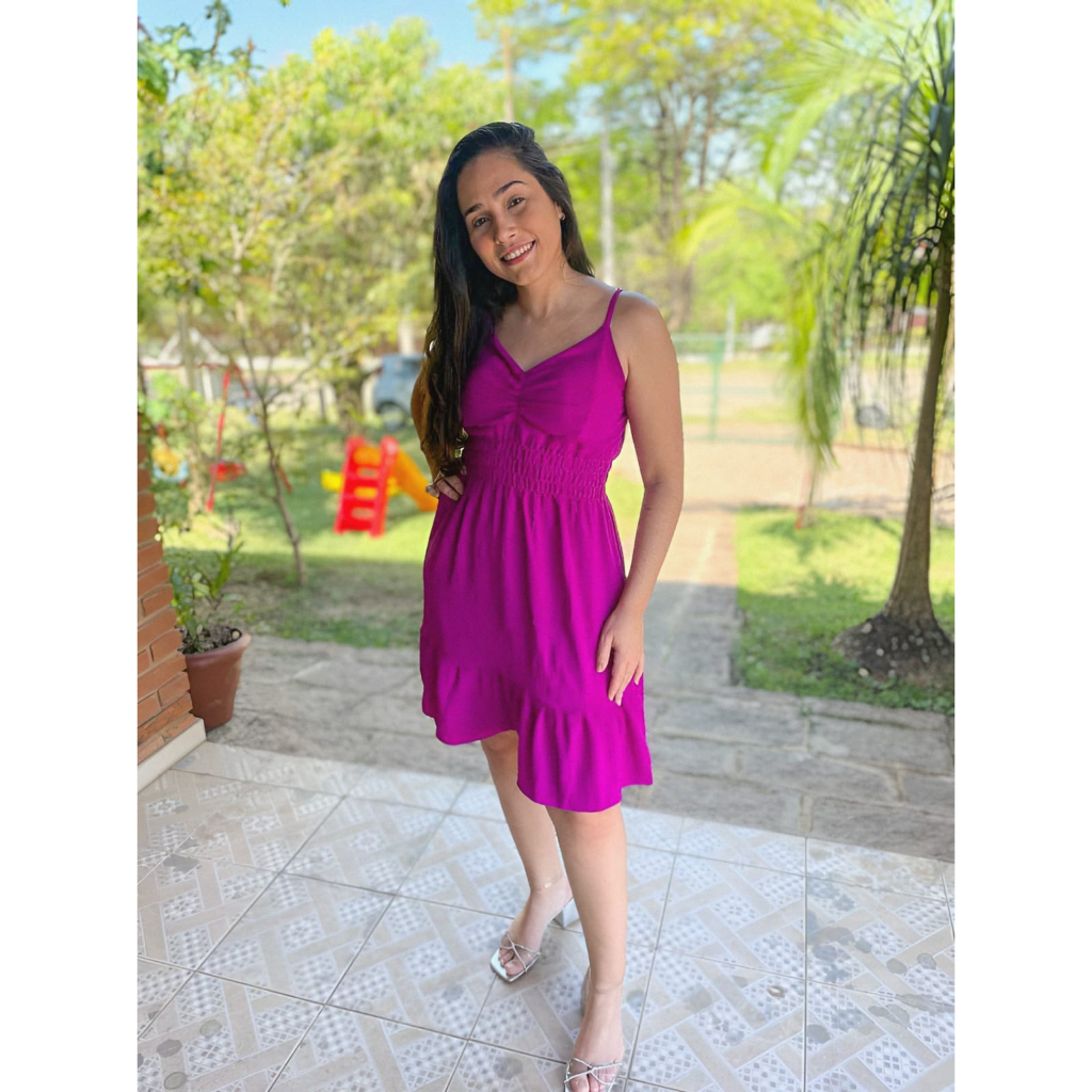 Vestido Curto Femenino Alça com Babado Vestido com Bojo e Forro Moda Verão Moda Femenina Tendências
