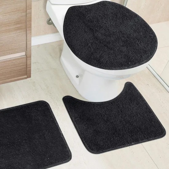 Jogo de Tapetes Para Banheiro Premium Super Soft Antiderrapante Absorvente Grosso Kit Conjunto Completo 3 Peças Macio Bonito Fofo Borracha SBR Emborrachado
