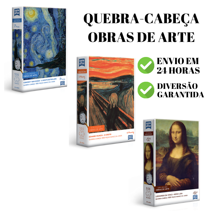 Quebra-Cabeça Puzzle Kit Obras de Arte 3X500 peças Nano – Mona Lisa, O Grito e A Noite Estrelada -