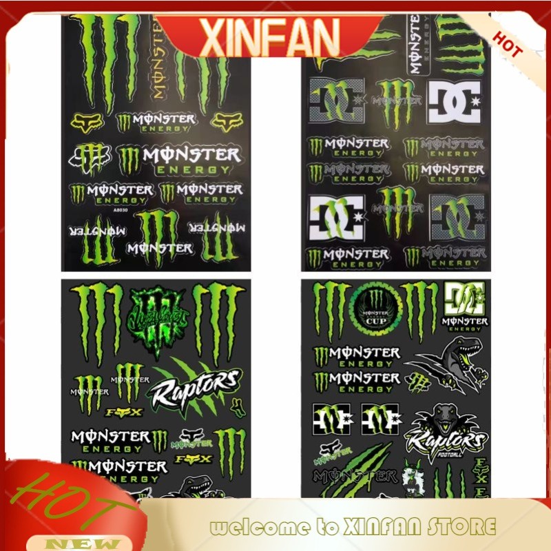 XINFAN A4 Adesivo Monstro Capacete De Motocicleta motor À Prova D'água Decalques 【 Ready Stock 】