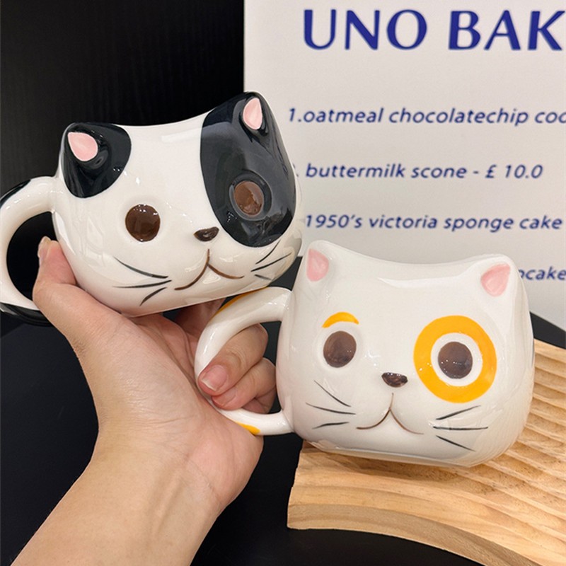 Caneca De Cerâmica Para Gatos De 430ml Com Colher De Sopa De Café Leite Criativo E Bonito Chávena De Chá Da Manhã Bebidas Presentes De Novidade