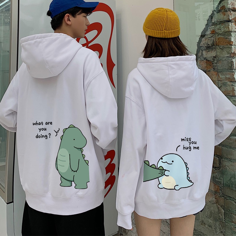Estoque Pronto Frete Grátis Dinossauro Casal De Inverno Moletom Com Capuz De Lã 2022 Influenciador ins Super Quente Jaqueta Da Moda