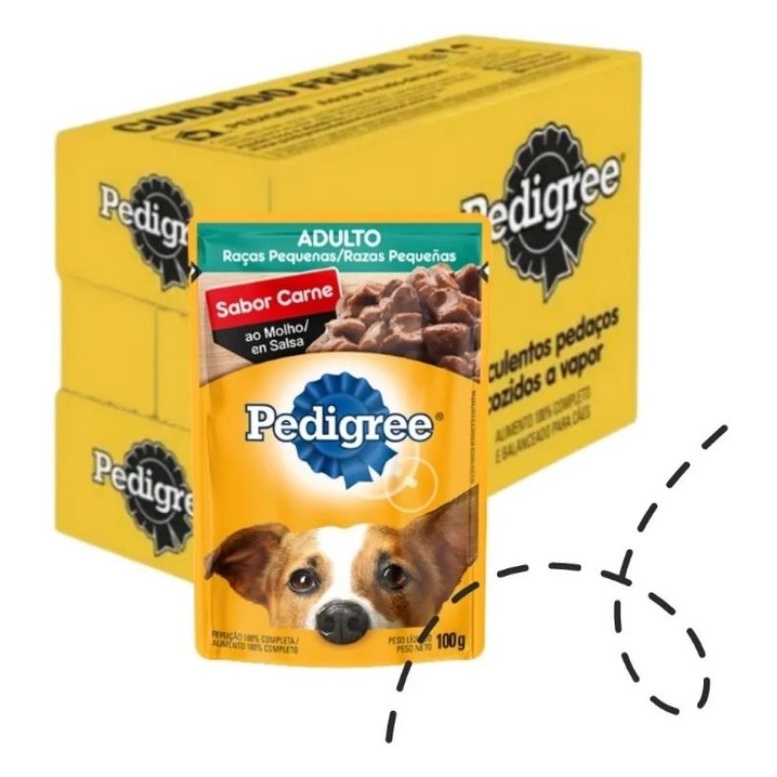 Caixa 12 Sachês Ração Úmida Pedigree Adulto Premium Para Cães Cachorro Pequeno Porte Sabor Carne