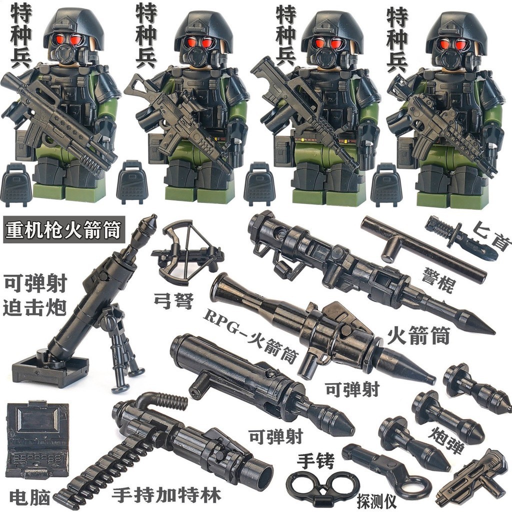 Compatível com os blocos de construção militares Lego Minifiguras da Polícia das Forças Especiais Minifiguras da Polícia Lançador de Argamassa Equipamento de Armas Brinquedos de Montagem