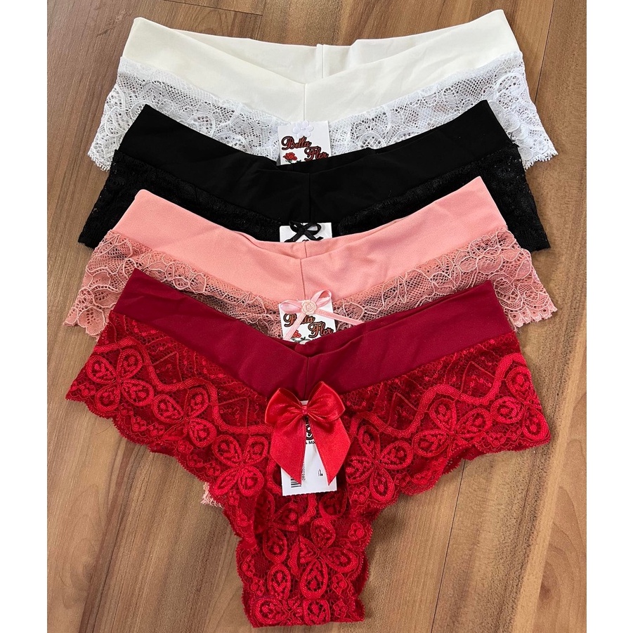 Kit com 6 Calcinhas BÉLGICA cintura rebatida média. Lingerie confortável para o seu dia a dia. Roupa íntima feminina com tecido suede canelado e forro 100% algodão. CalSinha perfeita, com preço de revenda e direto da fábrica você encontra na Mescla