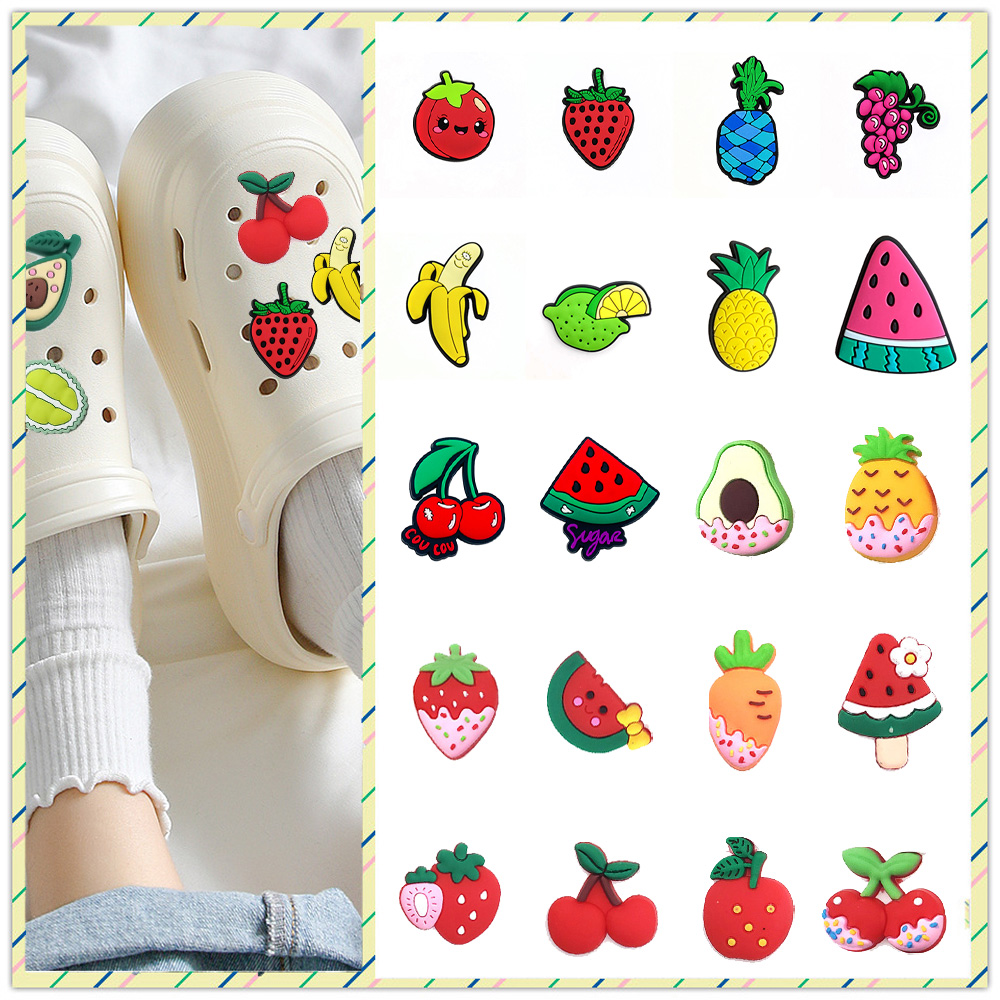 Desenho Animado Lovely Fruit Series Jibz Shoe Charms for Crocs Tamancos E Sapatos De Jardim Bonitos Acessórios De Fivela De Sandália De Pino De PVC Decorativo Para Festa Feminina