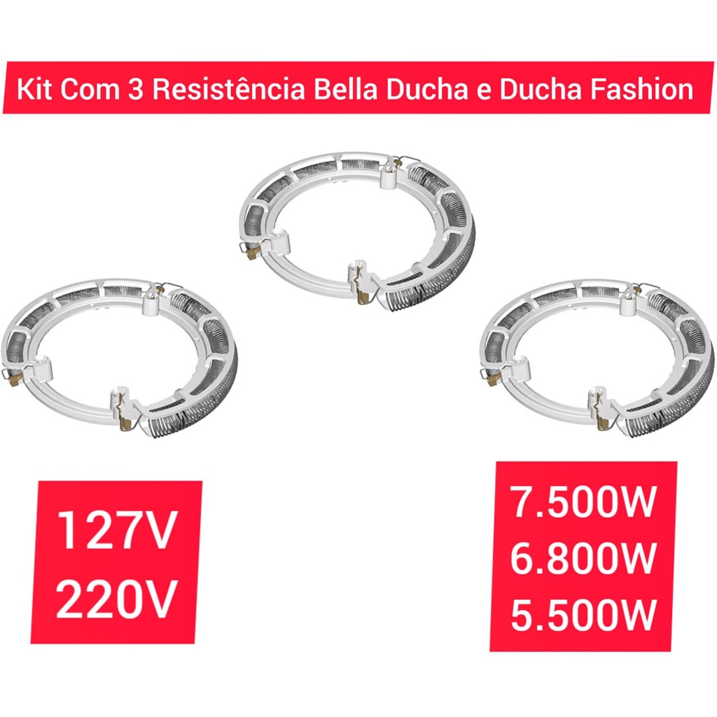 Resistência Bella Ducha E Ducha Fashion 4T 220V 7.500W 6.800W Ou 127V 5.500W Kit 3 Unidades Similar