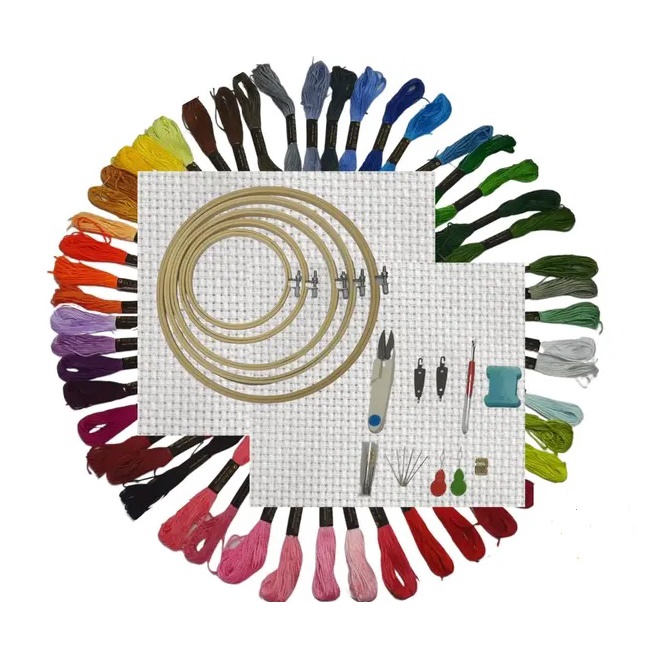 Kit Para Bordado Manual Ponto Russo Completo Com Bastidores