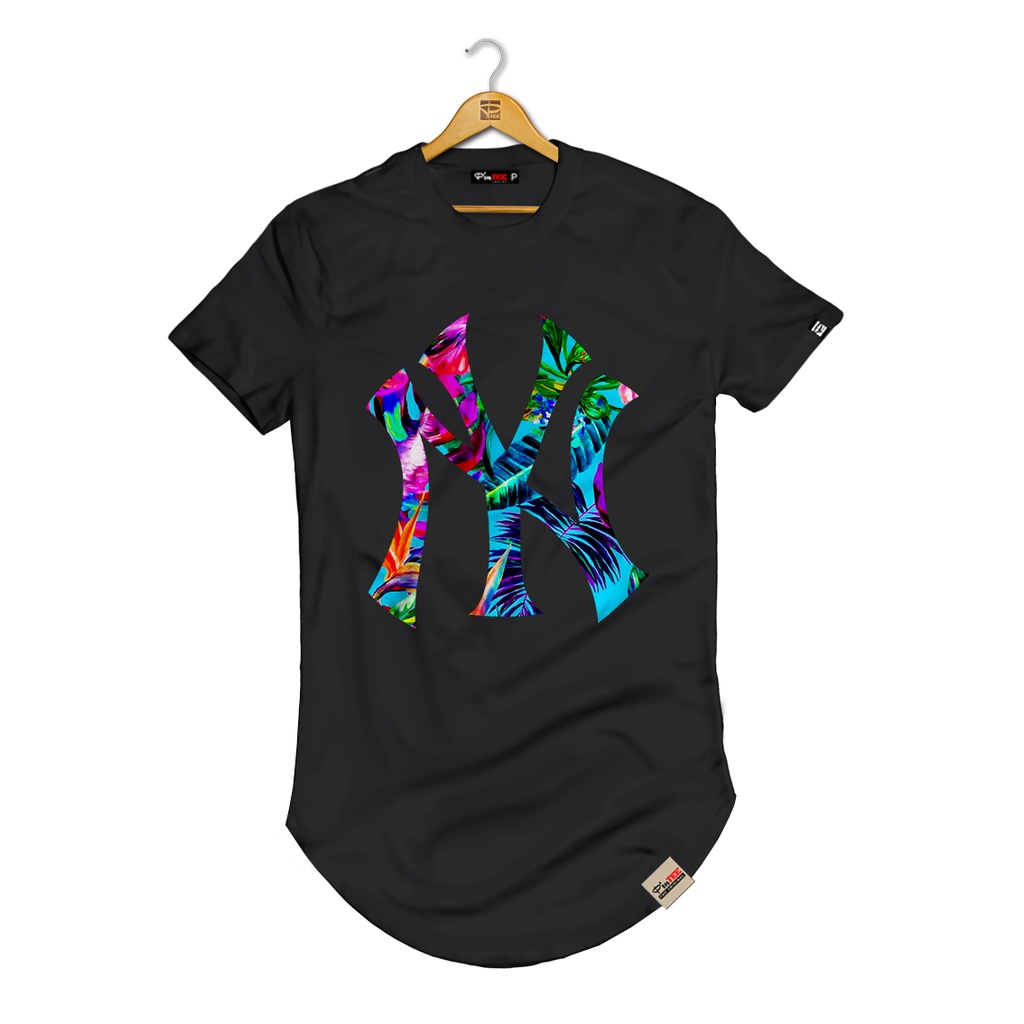 Camiseta Longline Masculina Pintee Wear Street Floral New York Blusa Alongada Manga Curta