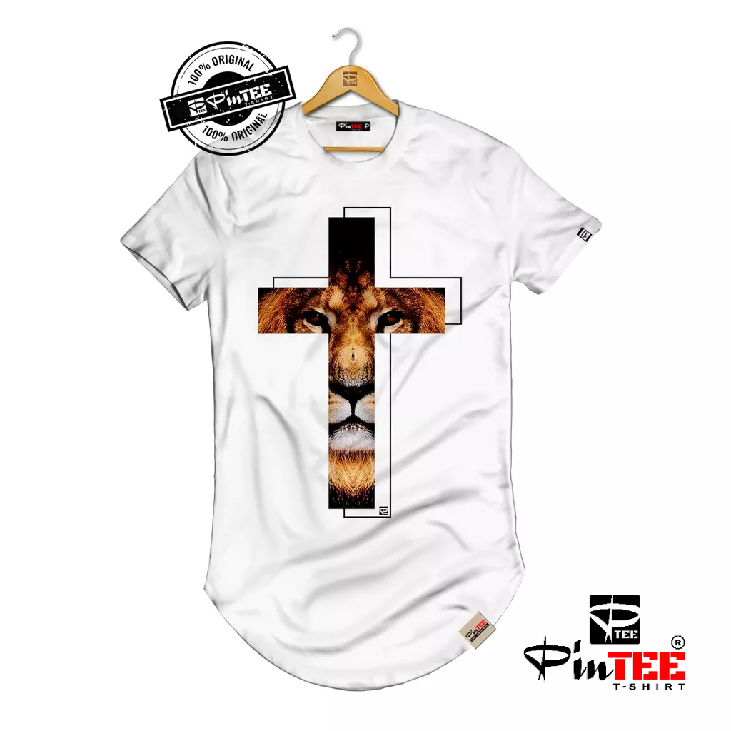 Camiseta Pintee Longline Camisa Masculina Cristã Leão Blusa Top 100% Algodão Ótima Qualidade