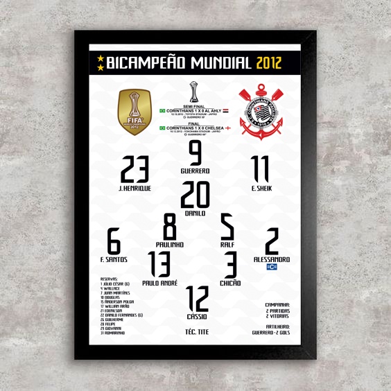 Quadro Decorativo do Sport Club Corinthians Paulista - Campeão Mundial 2012 - Para Decoração com Moldura e Vidro 100% Qualidade Premium