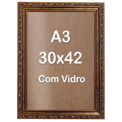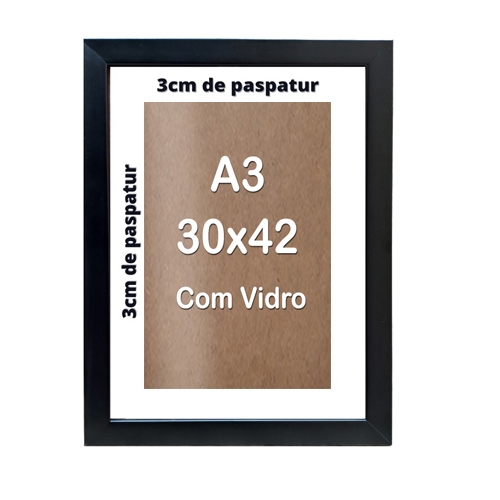 Moldura Quadro A3 30x42cm com Paspatur 3cm em Madeira com Vidro Para Poster Fotografia Certificado