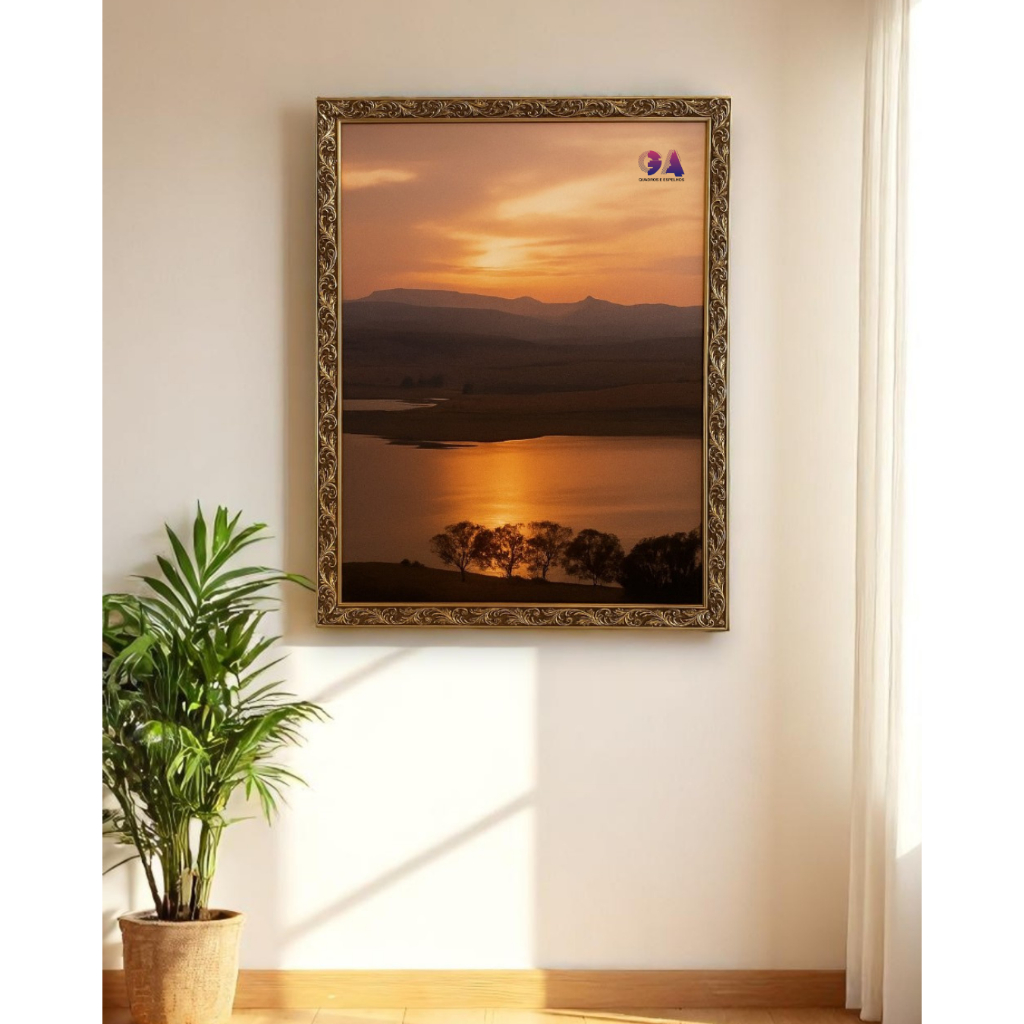 Moldura Quadro Com Duratex 30x40 A3 Dourado Trabalhado Para Fotos Decoração Quebra Cabeça