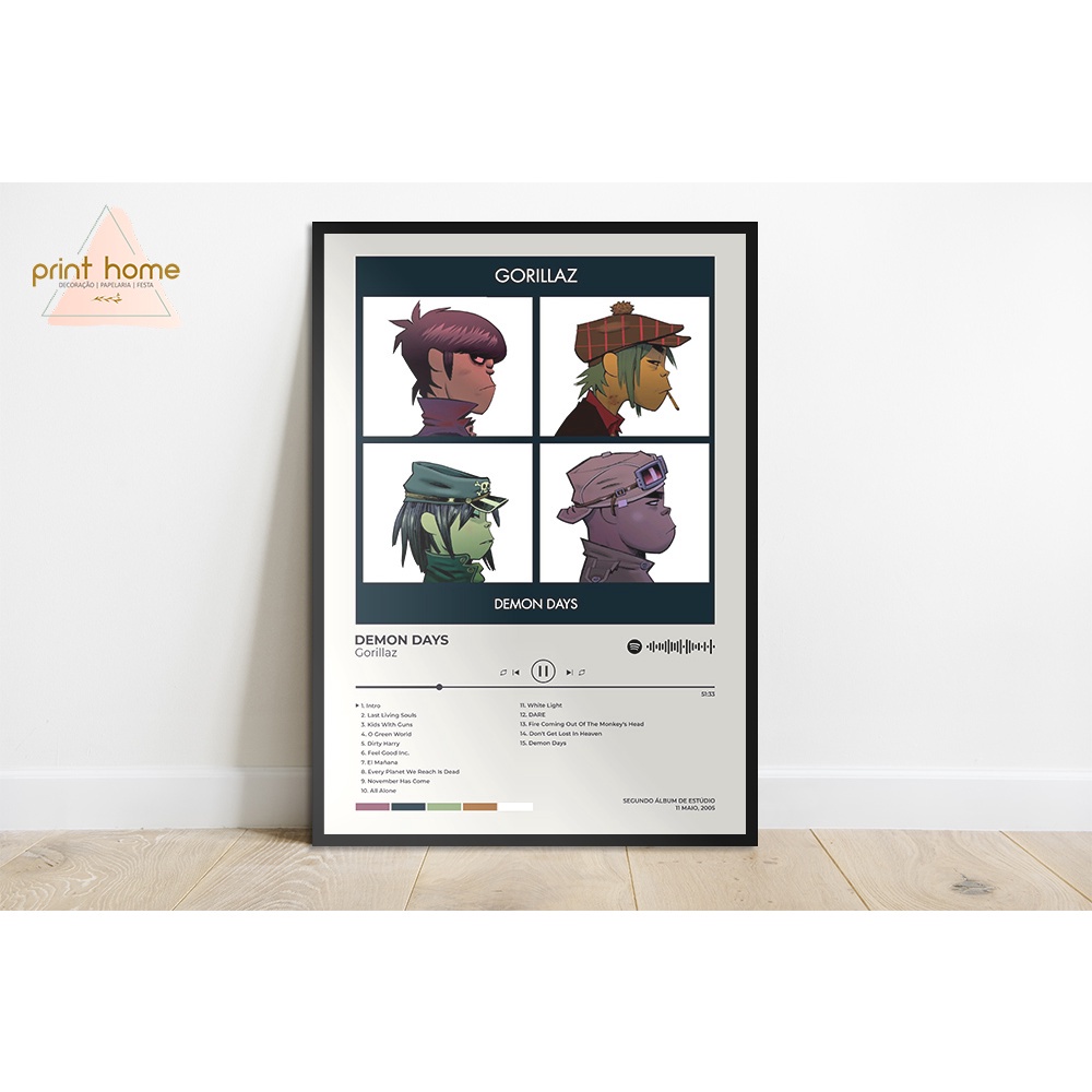 Quadro Placa MDF Spotify Álbum Gorillaz Demon Days
