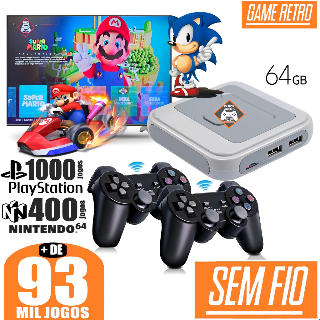 Vídeo Game Retro 93.000 Mil Jogos 64gb 2 Controles Com Fio Jogue Super Nintendo Megadrive Playstation 1 Arcade e vários outros Consoles Multijogos