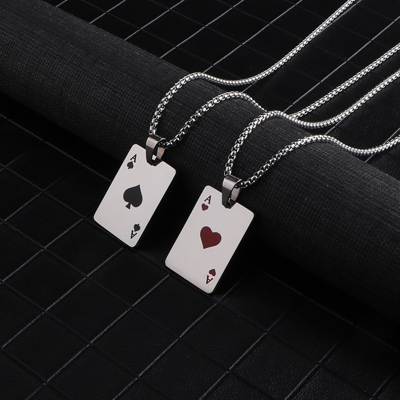 Colar De Titânio Cartas De Desenho De Corações E Espadas Um Amor Para Homens Mulheres Acessórios De Casal De Longo