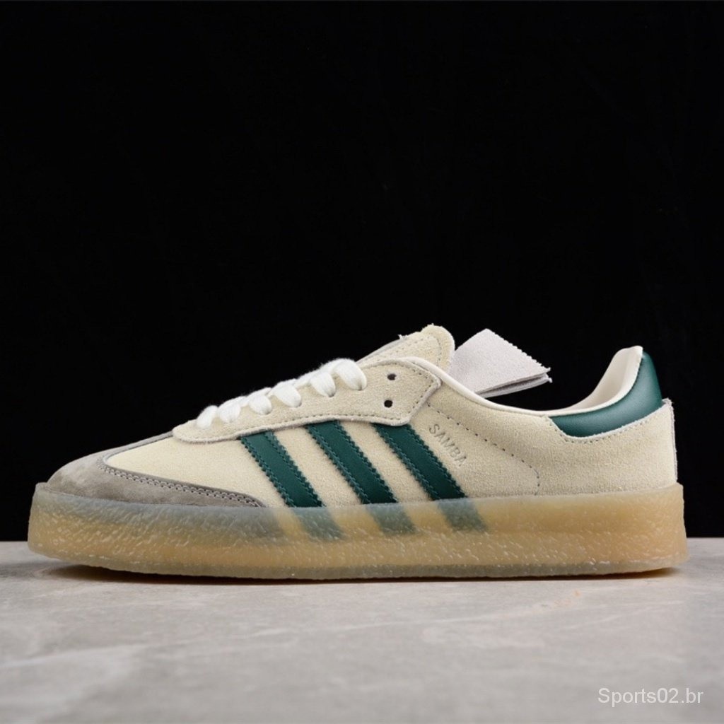 Sapatilhas Adidas Samba 8th Street Sapatilhas de moda casual, Alemão Bege Verde ID7297 Casca de cabeça de trevo Homem e mulher com os mesmos sapatos de tênis novos