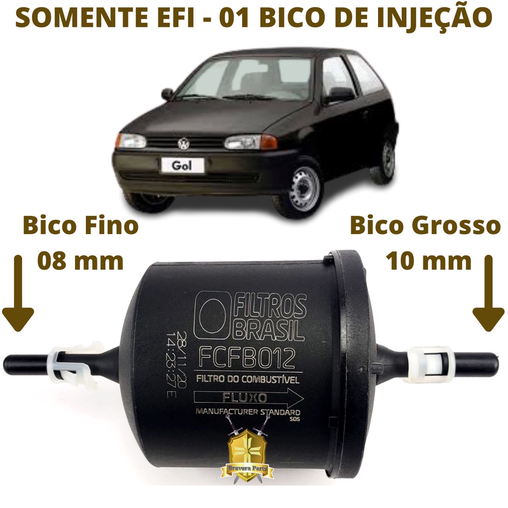 Filtro Combustivel Gol 1995 1996 G2 1.0 1.6 1.8 2.0 EFI somente 01 Bico injeção. Bico Fino 8mm e Grosso 10 mm
