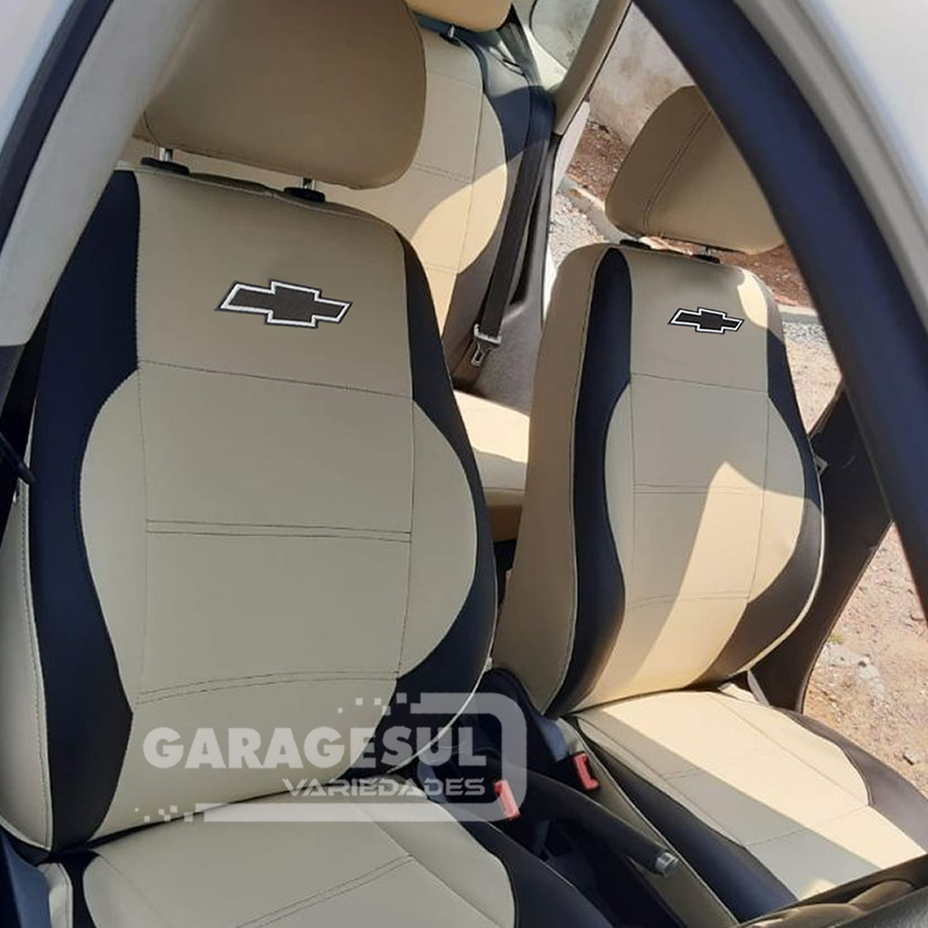 Capas de Bancos Automotivos Em Couro Creme e Preto Sob Medida Chevrolet Celta