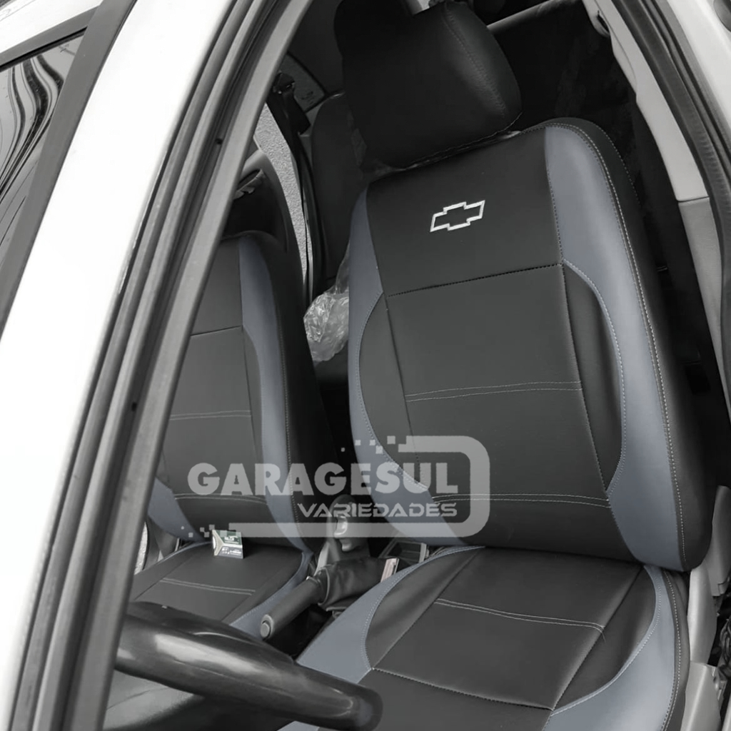 Capas de Bancos Automotivos Em Couro Preto e Cinza Sob Medida Chevrolet Celta
