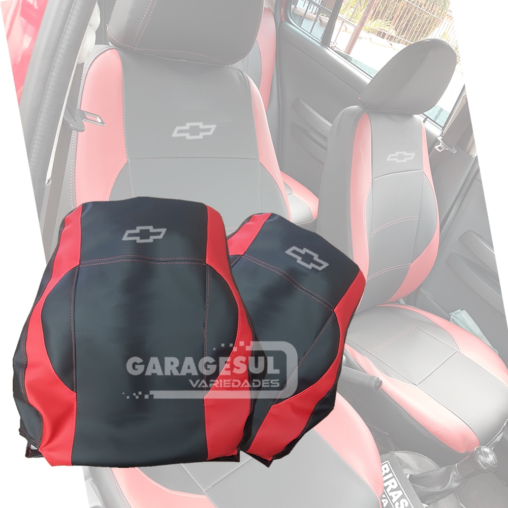 Capas de Bancos Automotivos Em Couro Preto e Vermelho Sob Medida Sport Chevrolet Prisma 2013 a 2018