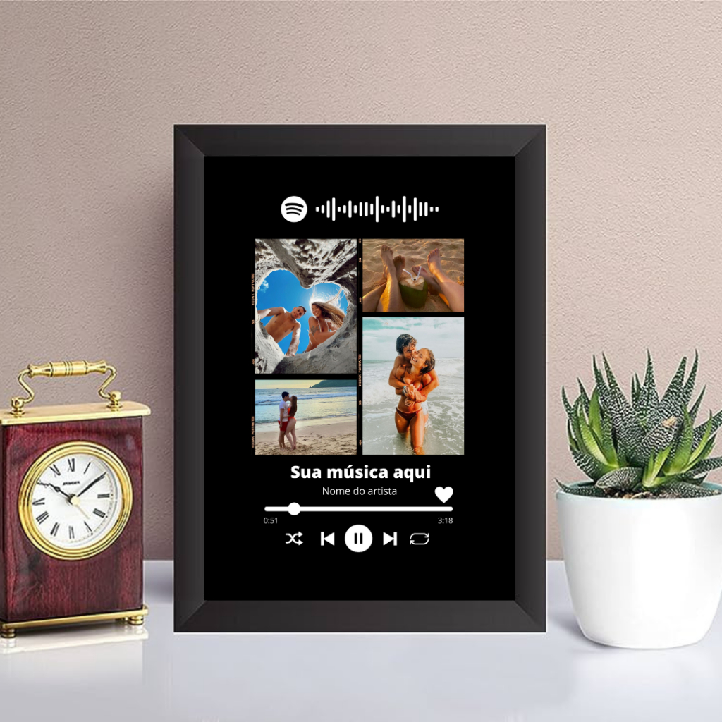 Quadro Spotify com Moldura - Personalizado com foto, Música e QR CODE da Música ou Playlist - Natal, Dia das mães / Dos Pais, Presente Dia dos Namorados, Aniversário