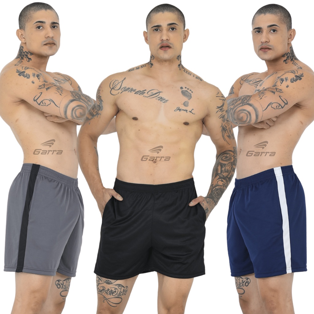 Kit 3 Bermuda Masculina Street Fitness no Dry para Academia e Atividade Física Garra Sport