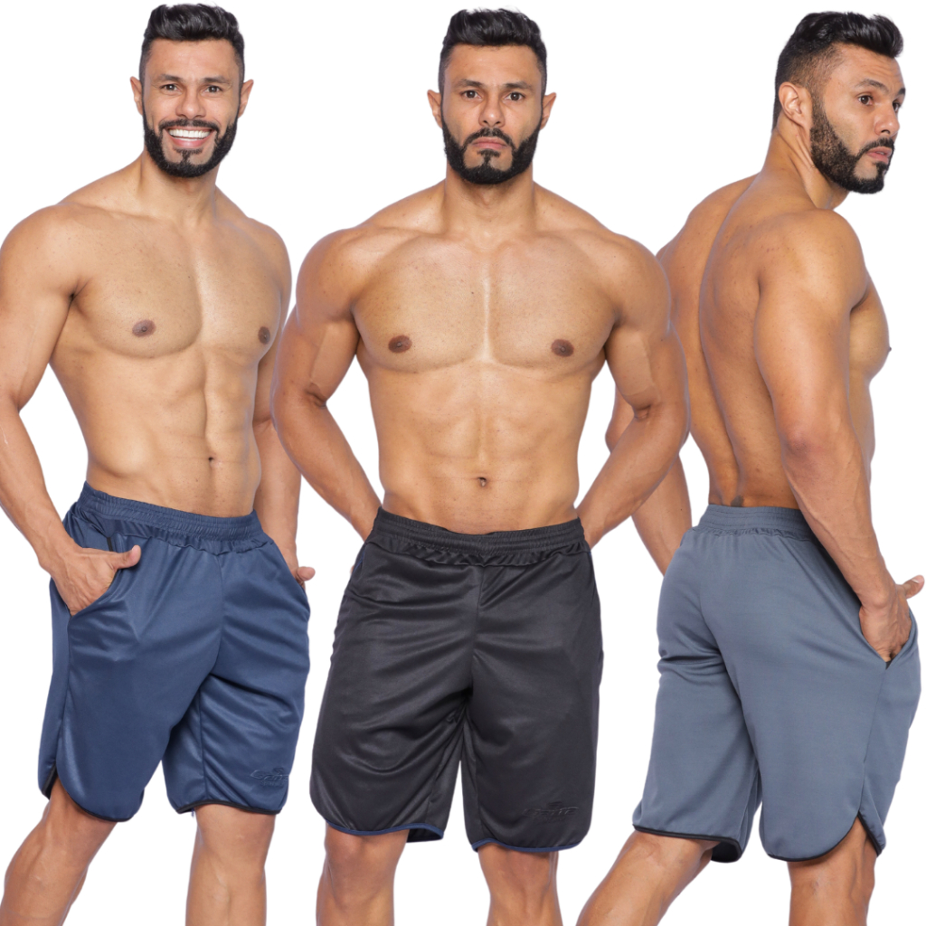 KIT 3 Bermuda masculina Fit Cores para atividade física e academia Garra Sport
