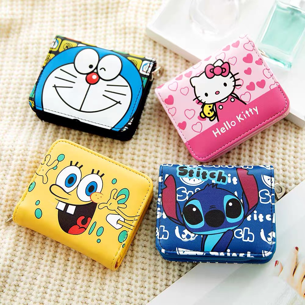 Carteira de impressão de desenhos animados de Stitch bonito ins carteira de moedas cor de macaron bolsa de cartão de estudante simples