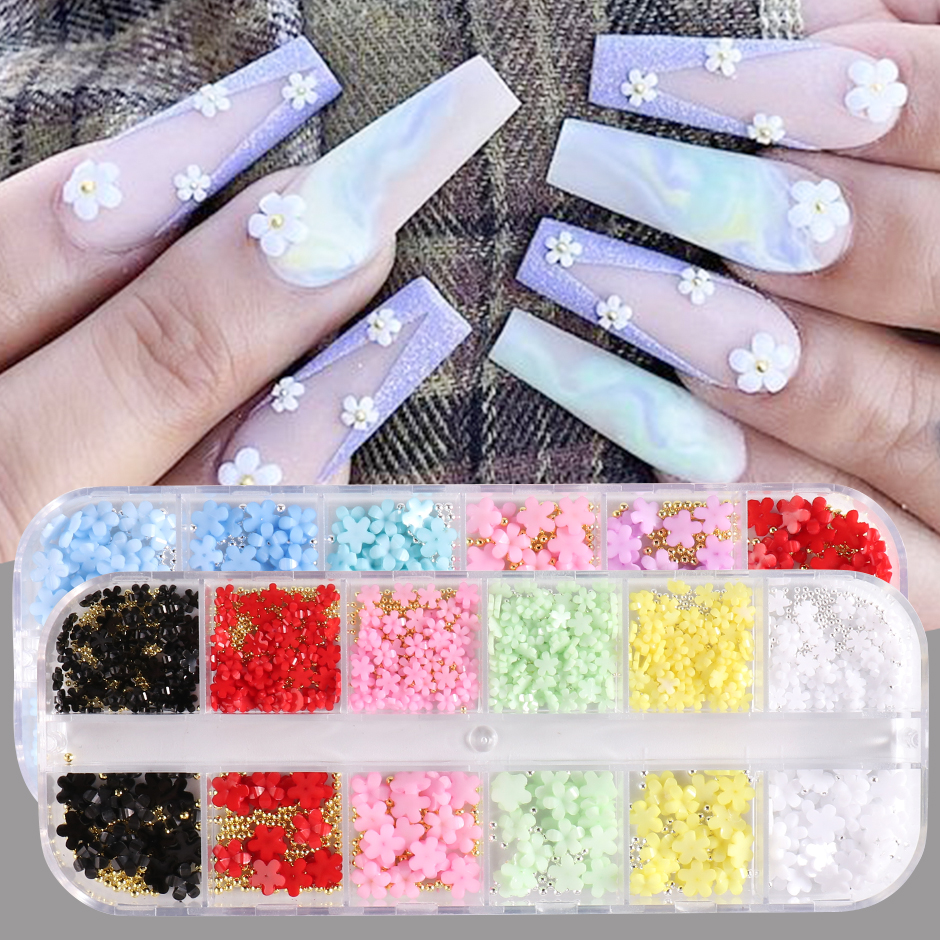 12 Grades 3D Encantos Resina Flor De Pregos Peças Mix Color Metal Beads Jóias Arte De Unhas Acessórios De Decoração Manicure Nail Suprimentos