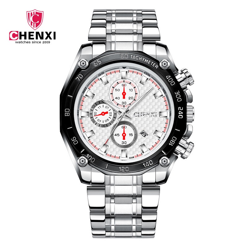 Relógio CHENXI Luxo De Alta Qualidade Para Homens Relógios De Pulso De Quartzo Cronógrafo De Aço Inoxidável Moda Esportivos À Prova D'água Masculino