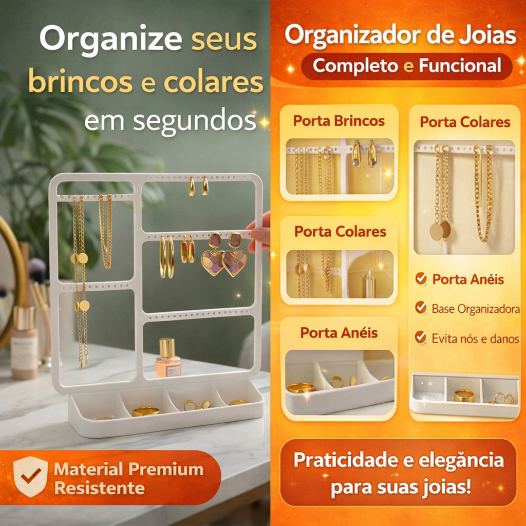 Organizador de Joias Premium com Porta Brincos Colares e Anéis | Suporte Elegante Decorativo