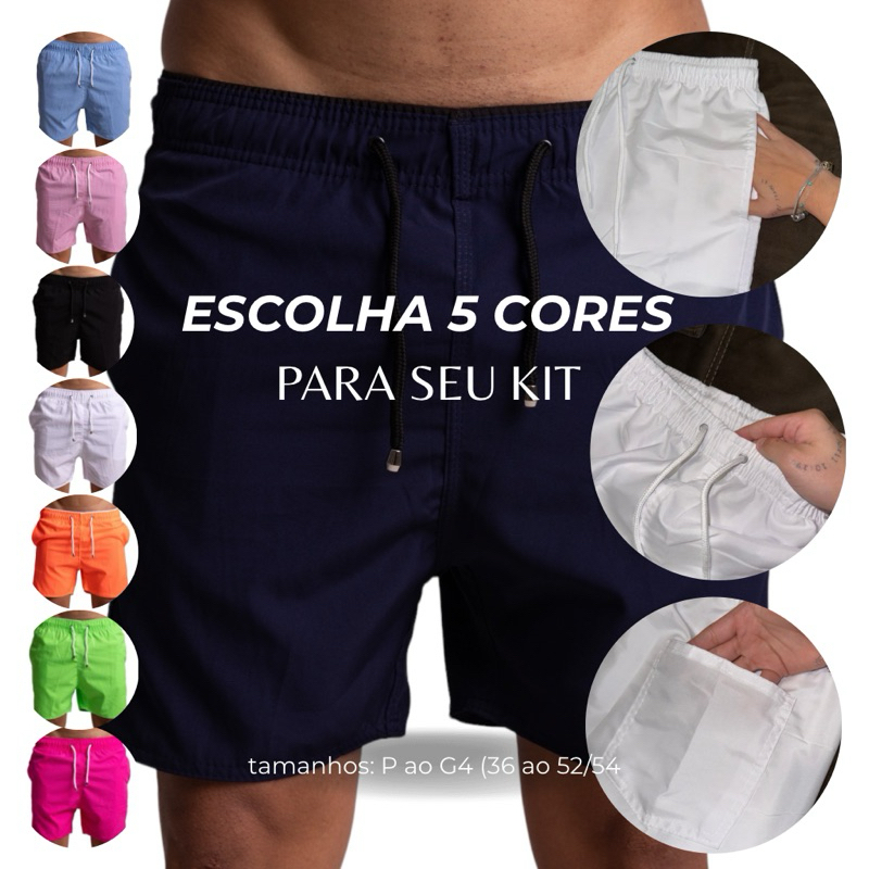 Kit 5 Short Bermuda Masculino Praia Tactel Mauricinho Academia Surf