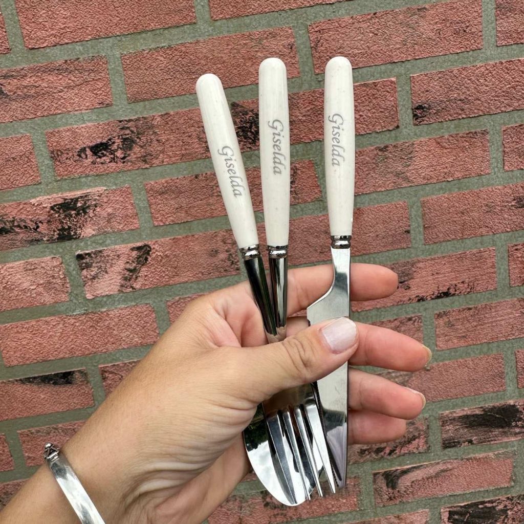 Kit Talher Personalizado Adulto ou Criança 3 Peças Garfo Faca e Colher com seu Nome