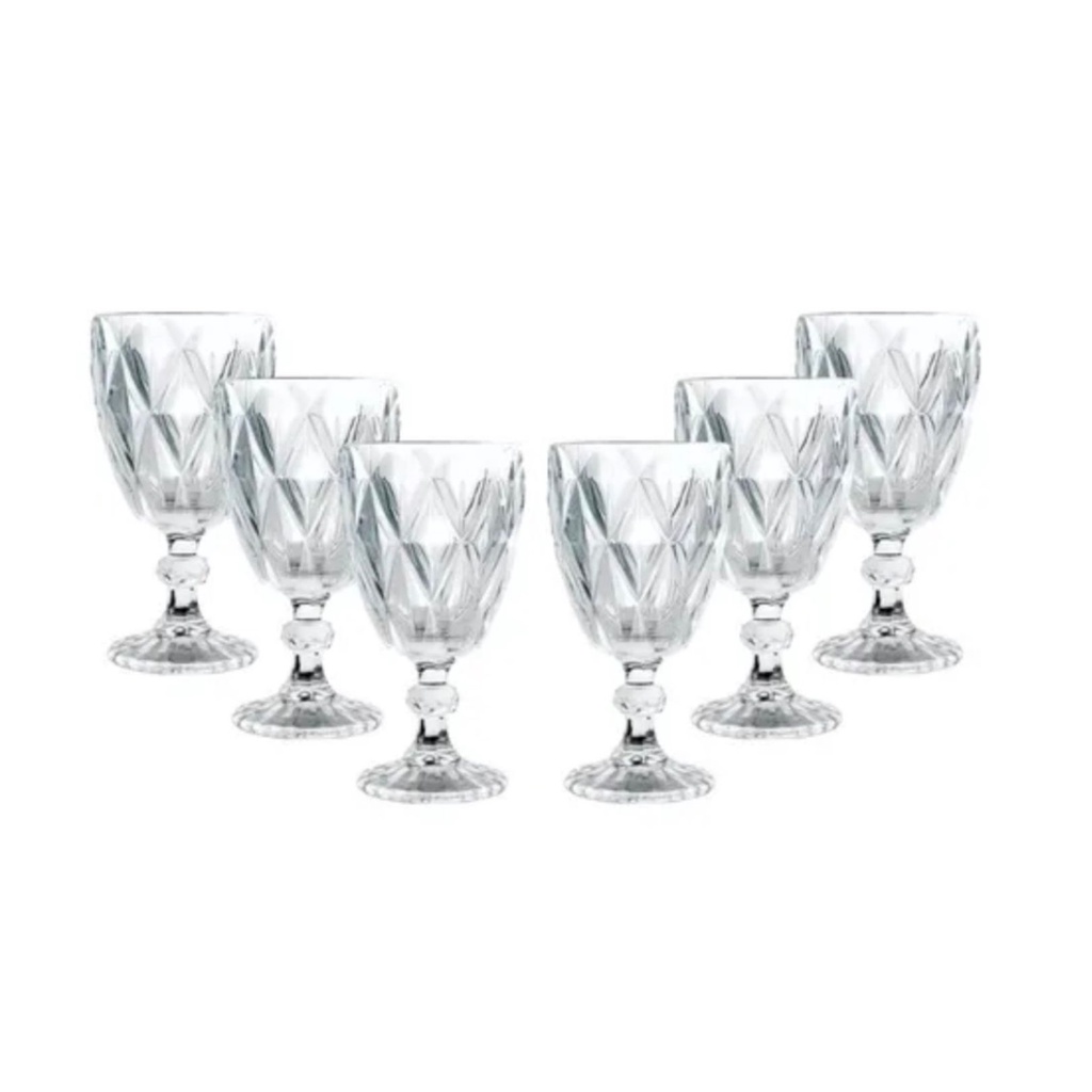 Jogo 6 Taças de Vidro Diamond para Vinho Suco Água 310ml