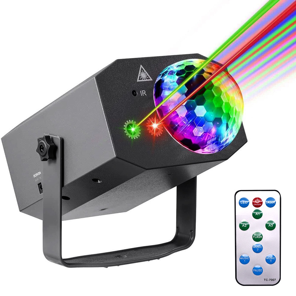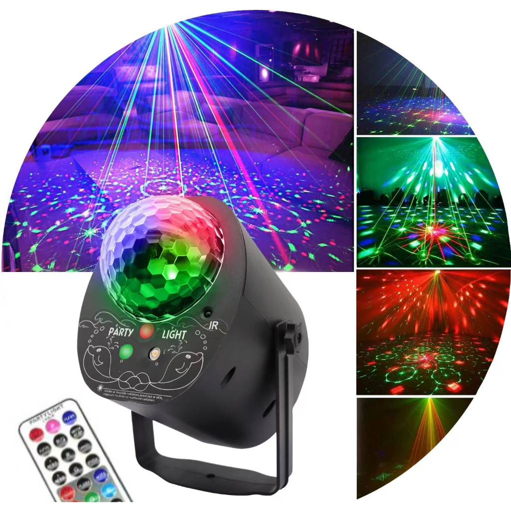 Canhão de festa com globo giratório com 2 Leiser flexe completo- Efeito de padrão a laser com LED de cristal bola mágica para disco RGB projetor de luzes de festa para DJ