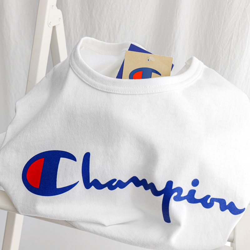 Camiseta Puro Campeão de Algodão Champion Big C Manga Curta Oca Grande Pescoço Redondo Homem Mulher Casal