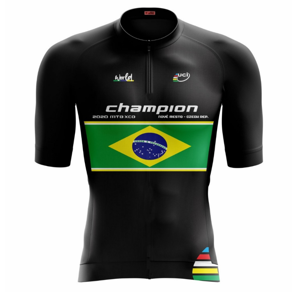 Camisa de Ciclismo Masculina Camiseta Champion Brasil Manga Curta Equipe Proteção UV Bike Pedal Mtb