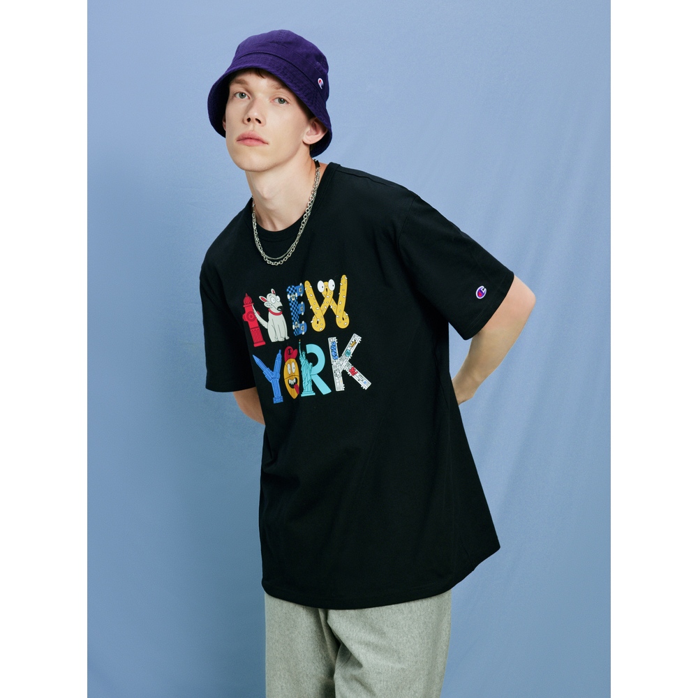 Camiseta De Manga Curta 100 % Algodão Bordada Tridimensional Com O Logotipo Champion Gola Redonda Solta