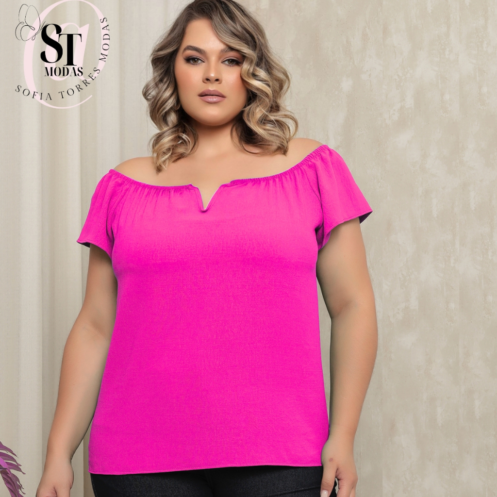 Blusa Plus Size Social Feminina Ciganinha Ombro a ombro Decote V Manga Curta Soltinha