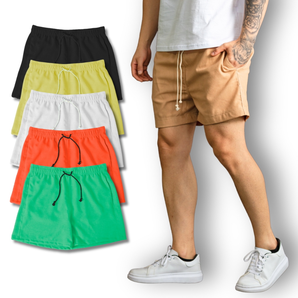 Bermuda Shorts Linho Masculino Básico Casual Liso