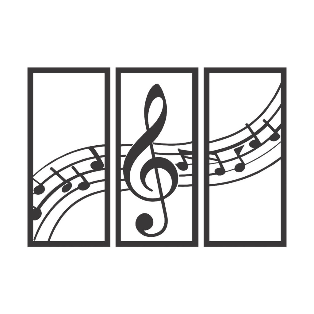 Trio de Quadros Decorativo Notas Musicais MDF Preto Fosco