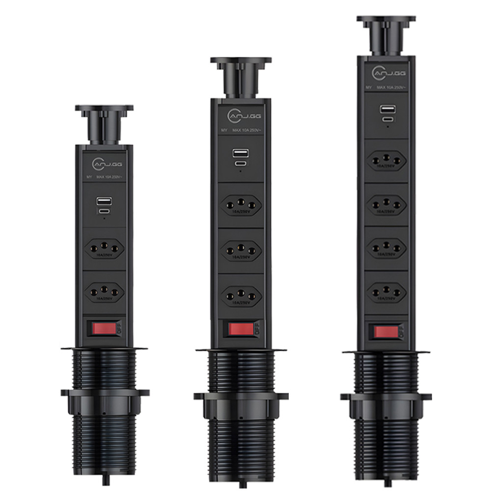 Torre de Tomada Multiplug Embutir Retrátil com USB e Tipo-C 2 3 4 Tomadas 2500W Mesa Bancada