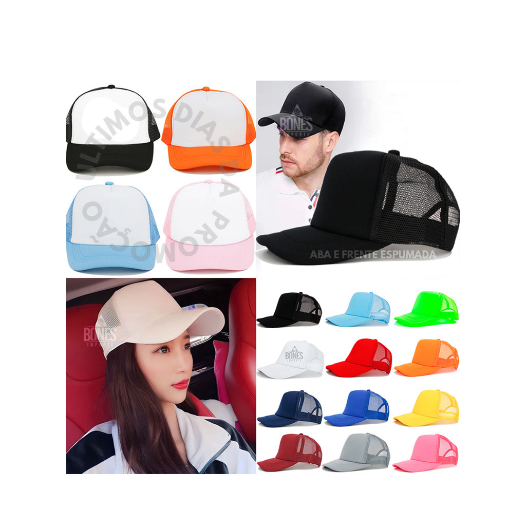 Boné Básico Importado Liso Trucker Feminino e Masculino Aba curva Redinha Com Regulagem Alta Qualidade