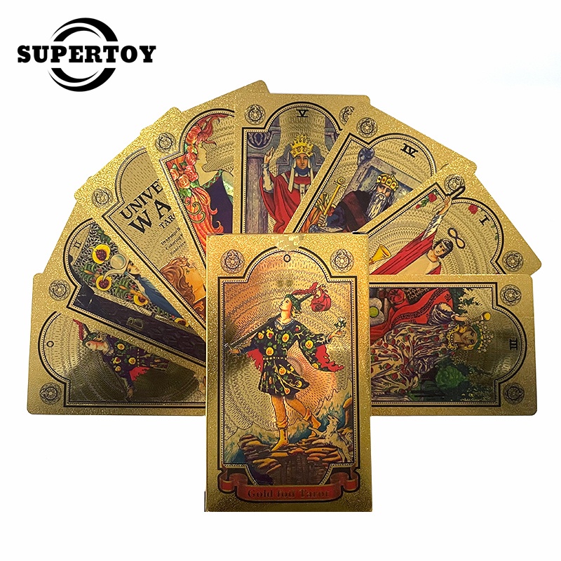 SUPERTOY Conjunto De Cartões De Tarô Caixa De Presente Cartão De Folha Dourada De Luxo Carimbo Quente PVC 12cm * 7cm
