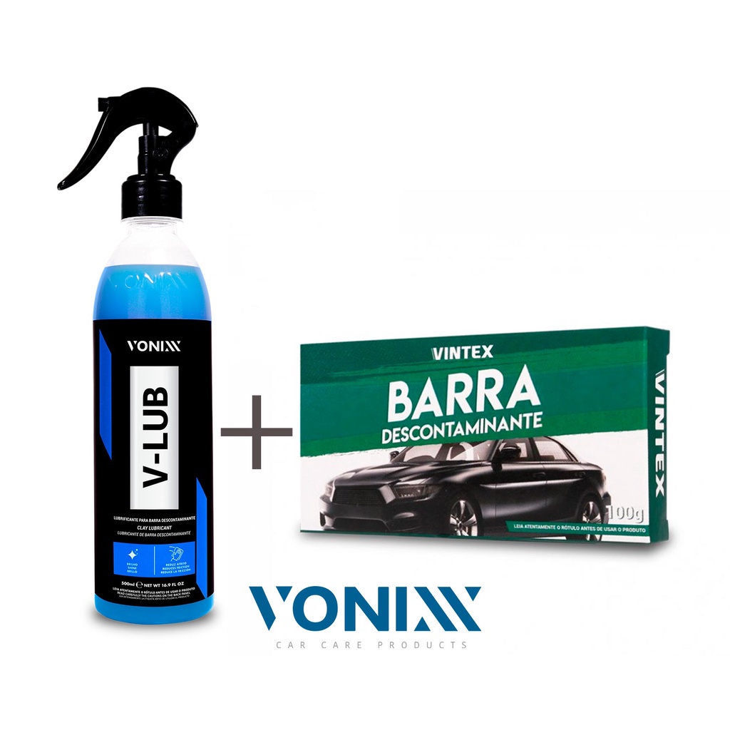 Kit Vintex Claybar Descontaminante de Pintura 100g + Vonixx V-Lub Lubrificante 500ml