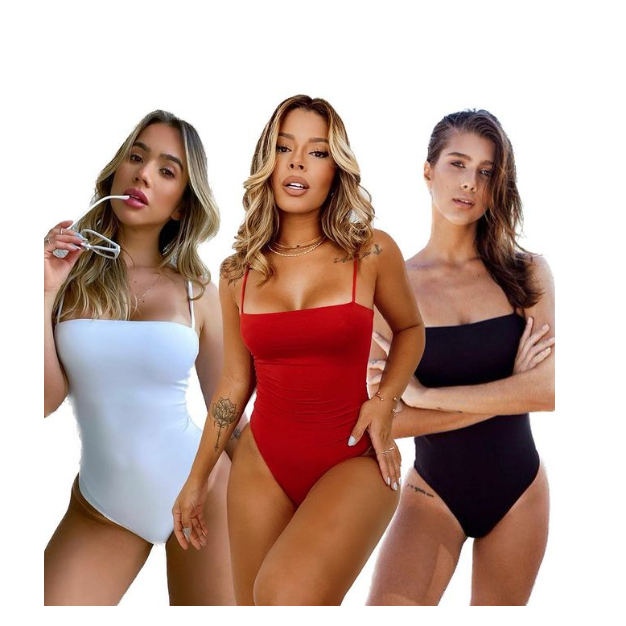 Body Bori Maiô Feminino Decote Reto Alça Alcinha com Bojo Suplex Tendência Ref BodyReto