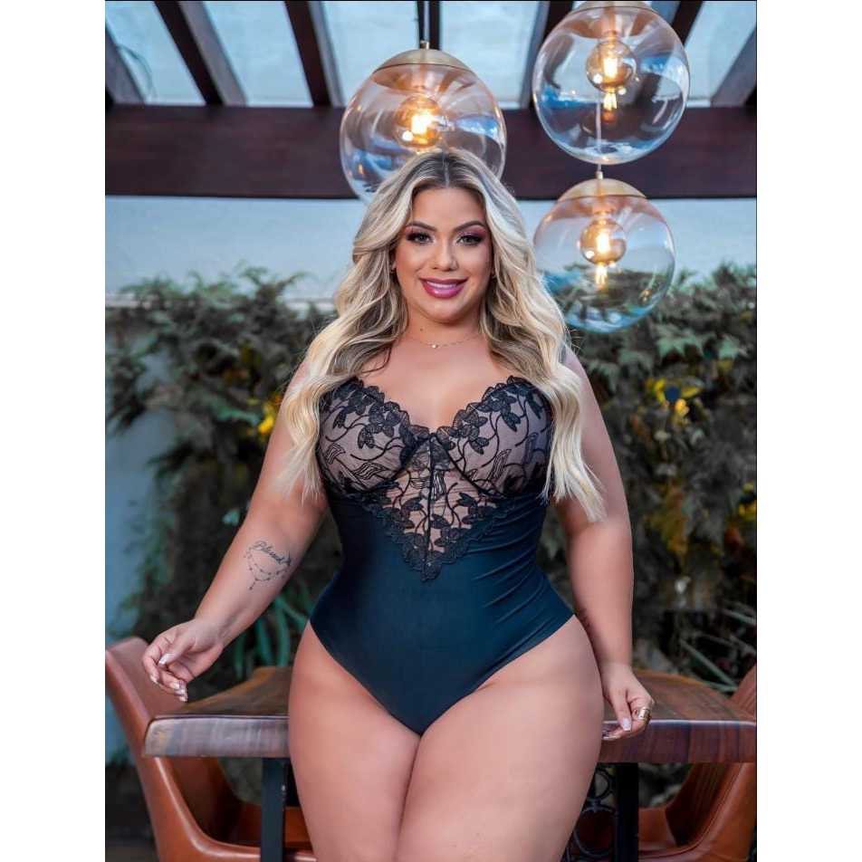 Body Bordado Feminino Plus Size Rendado Em V Com Bojo Sexy decotad elegante romântico casual moderno festa dia a dia