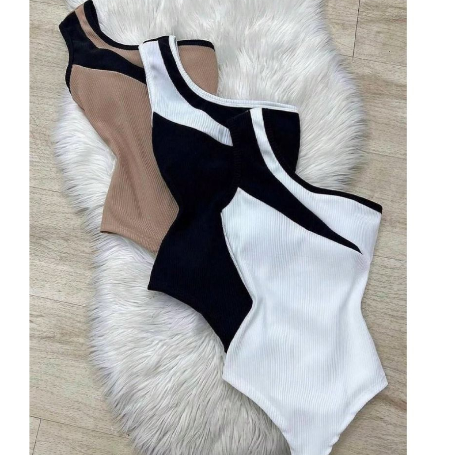 Body maiô com bojo corte vazado no lado esquerdo um ombro só