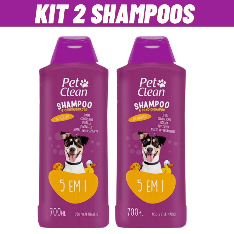 Kit Shampoo 5 em 1 + Condicionador + Perfume ou sem Perfume para Cães e Gatos Pet Clean